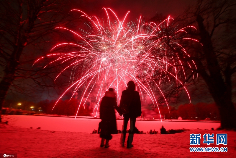 俄罗斯燃放烟花 庆祝东正教圣诞节
