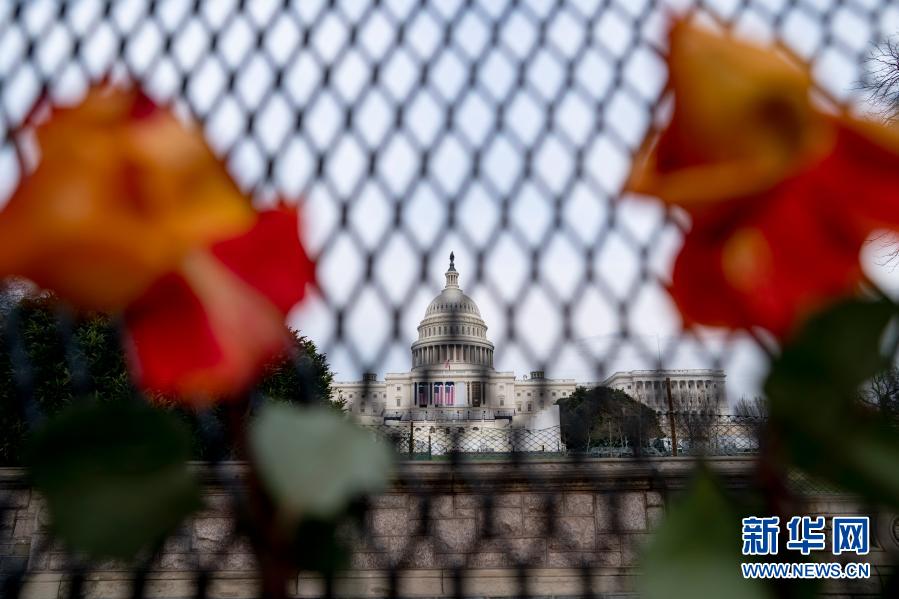 这是1月11日在美国首都华盛顿透过隔离围栏拍摄的国会大厦。新华社记者 刘杰 摄