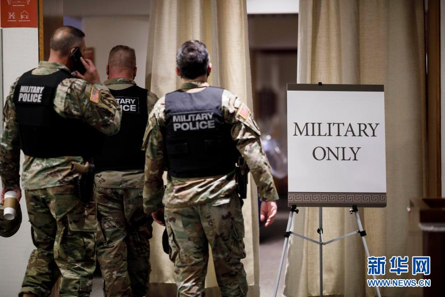 这是1月14日在美国首都华盛顿特区的国会拍摄的美国国民警卫队士兵。