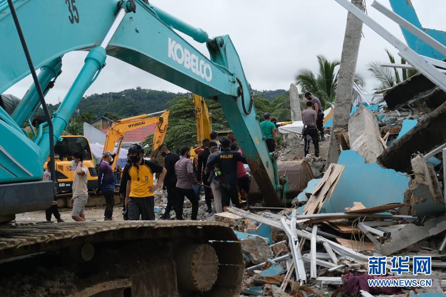 1月15日,在印度尼西亚西苏拉威西省马穆朱,救援人员开展搜救工作。 新华社发(萨德利·阿沙里·赛义德 摄)