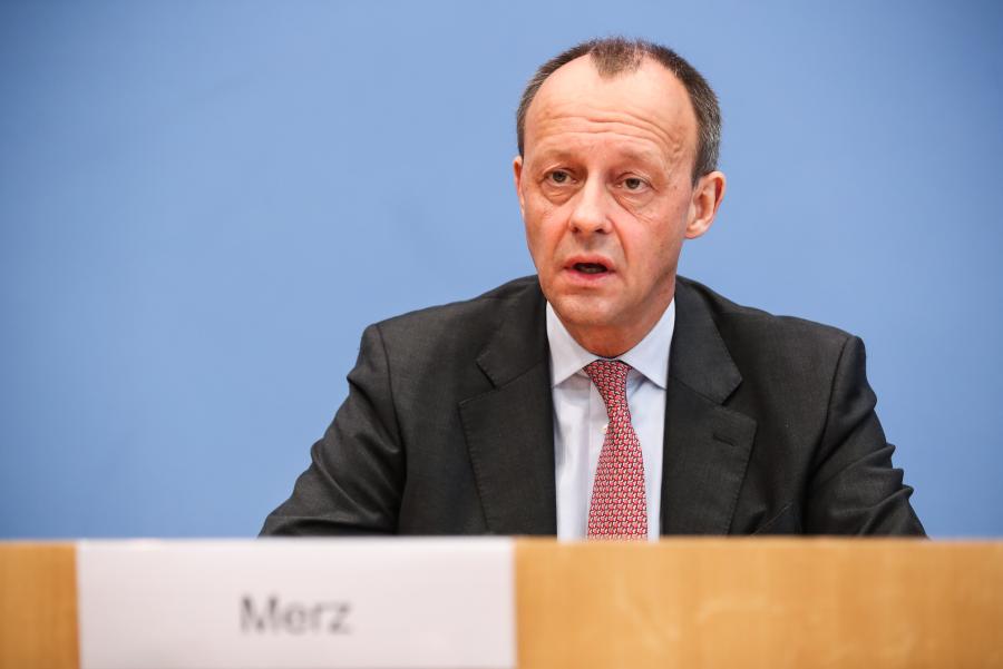 2020年2月25日,在德国首都柏林,弗里德里希·默茨出席新闻发布会。新华社记者 单宇琦 摄