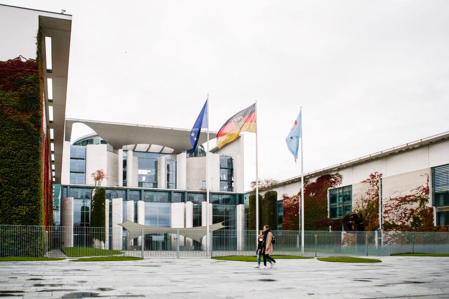 2020年10月15日,在德国首都柏林,行人经过总理府。新华社发