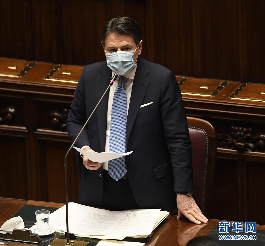 1月18日,在意大利罗马,意大利总理孔特在众议院发表讲话。