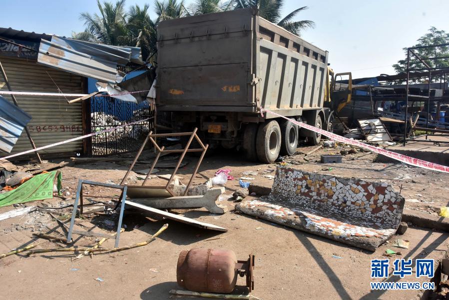 这是1月19日在印度古吉拉特邦苏拉特市附近拍摄的交通事故现场。