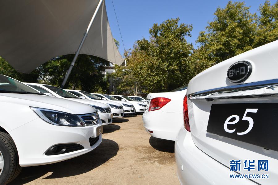 这是1月19日在智利圣地亚哥拍摄的比亚迪纯电动车。新华社发