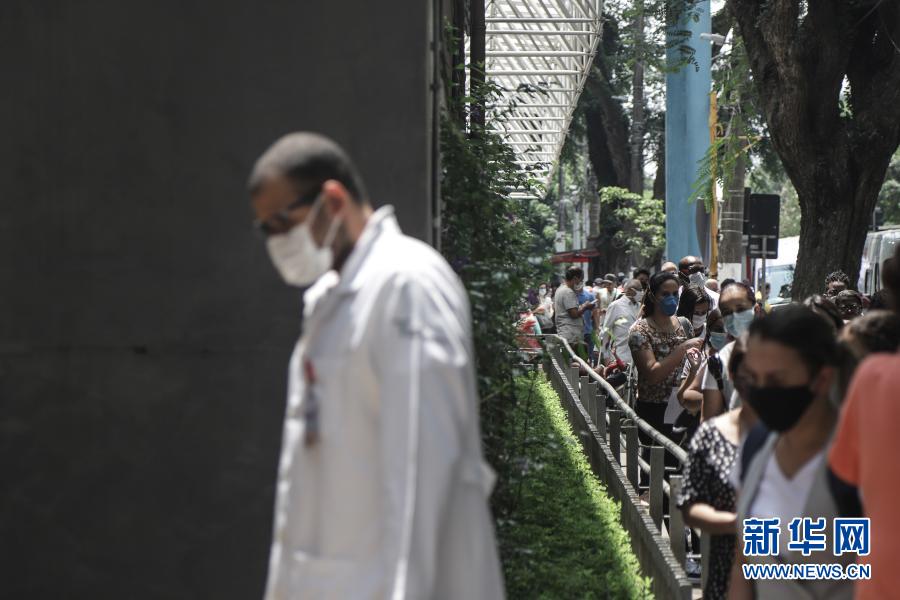 1月19日,在巴西圣保罗,医务人员排队等待接种中国新冠疫苗。新华社发(拉赫尔·帕特拉索摄)