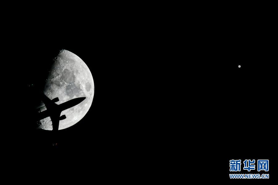 这是1月21日在墨西哥首都墨西哥城通过二次曝光拍摄的火星(右)和月亮。 新华社记者 辛悦卫 摄