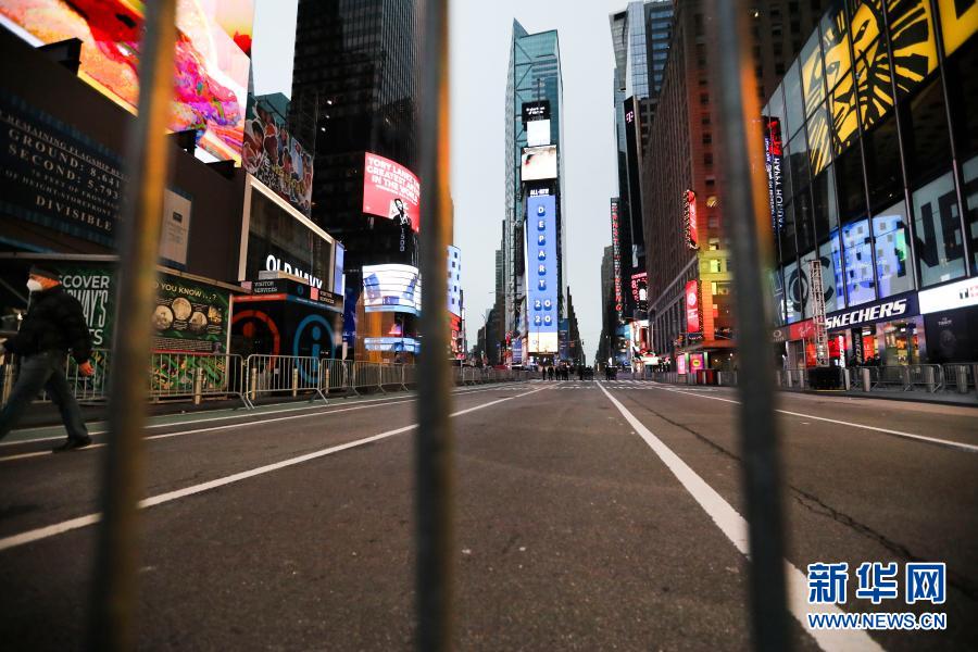 这是2020年12月31日拍摄的空荡的美国纽约时报广场。新华社记者 王迎 摄