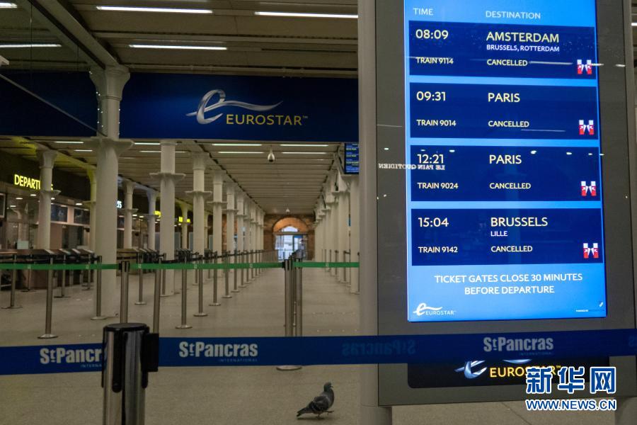 2020年12月21日,英国伦敦圣潘克拉斯火车站国际出发大厅内显示,多趟“欧洲之星”列车被取消。新华社发(蒂姆·爱尔兰摄)