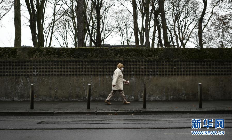 1月27日,一名行人德国法兰克福从老犹太公墓外的“姓名墙”旁经过。