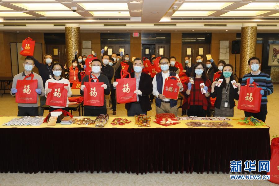 牛年春节即将到来之际,中国驻纽约总领事馆向领区部分中国留学生、侨胞发放“春节包”,传递祖国的关心关爱。此次发放的“春节包”包含医用口罩、新春贺卡、春联、福字等物品。