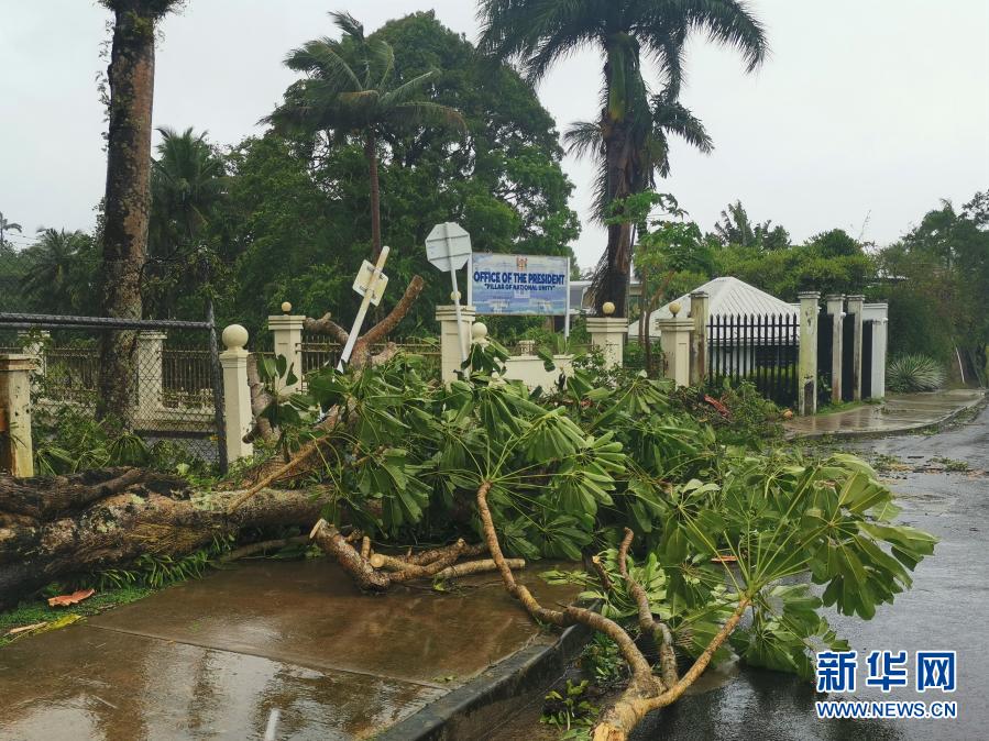 这是1月31日在斐济苏瓦街头拍摄的被吹倒的树枝。新华社记者 张永兴 摄