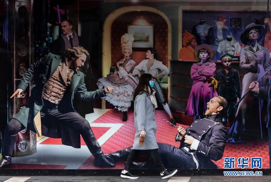 2月3日,一名戴口罩的女子从英国伦敦一家关闭的剧院前走过。