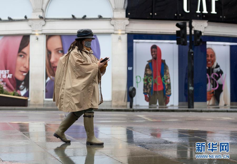2月3日,一名戴口罩的女子走在英国伦敦街头。