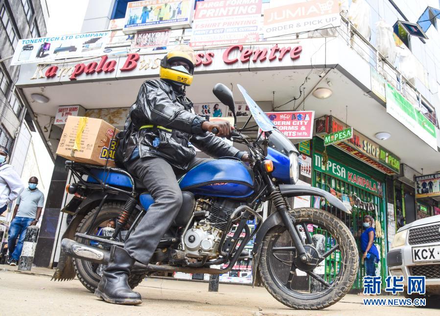 1月22日,摩西·奥蒂诺在肯尼亚首都内罗毕准备驾驶摩托车给客户送货。新华社发(约翰·奥科约摄)