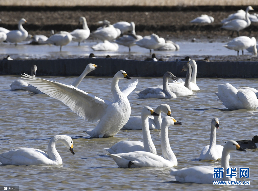 2月4日,日本千叶县,从西伯利亚来的天鹅在此过冬。(图片说明:东方IC)