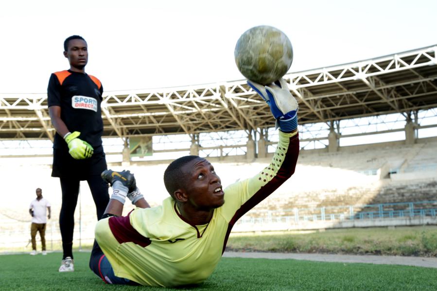 在坦桑尼亚最大城市达累斯萨拉姆郊外的绿茵场上,哈勒凡·凯安加顶着热带烈日的炙烤,艰难而熟练地完成了奔跑、传球、过人等一系列训练动作。