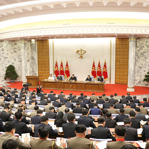 这张朝中社2月11日提供的图片显示的是10日举行的朝鲜劳动党第八届中央委员会第二次全体会议现场。