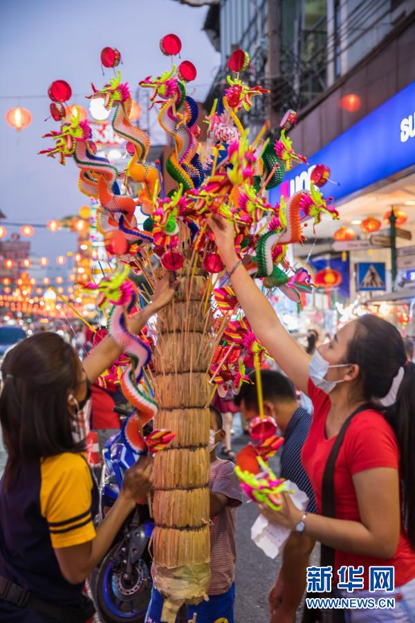 2月11日,人们在泰国曼谷唐人街游玩。泰国政府今年首次将春节设为法定假日。新华社记者 张可任 摄