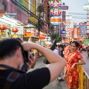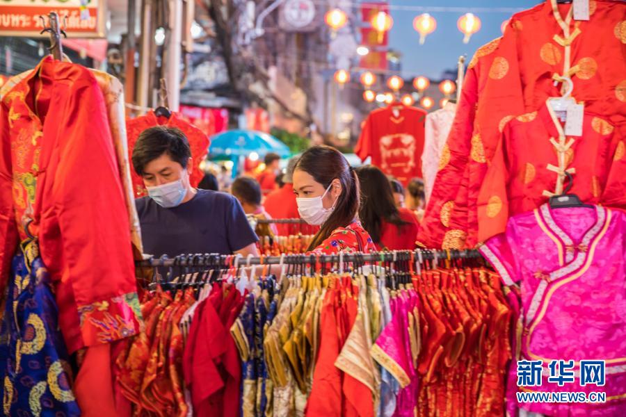 2月11日,一名女子在泰国曼谷唐人街选购旗袍。泰国政府今年首次将春节设为法定假日。新华社记者 张可任 摄