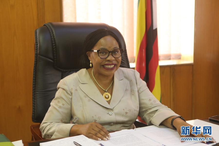 2月11日,在津巴布韦首都哈拉雷,津新闻部长穆茨万古瓦接受中方媒体联合采访。新华社记者张玉亮摄
