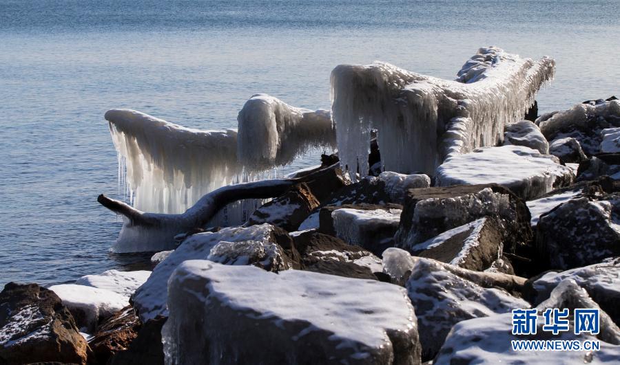 这是2月11日在加拿大多伦多安大略湖边拍摄的被冰柱覆盖的树枝。