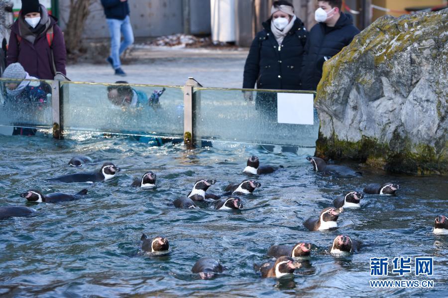 2月14日,游客在奥地利维也纳美泉宫动物园观赏洪堡企鹅。