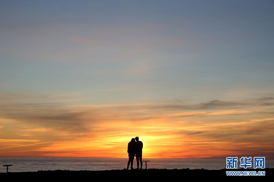 这是2月14日在葡萄牙奥埃拉什拍摄的一对情侣。新华社发(佩德罗·菲乌萨摄)