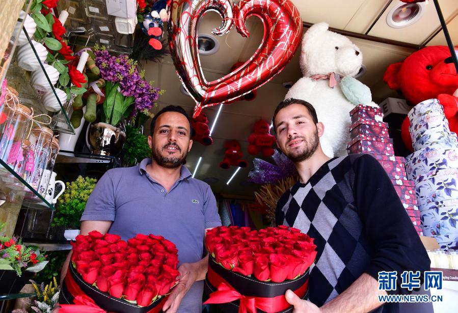 2月14日,商贩在叙利亚首都大马士革展示为情人节准备的玫瑰。新华社发(阿马尔·萨法尔贾拉尼摄)