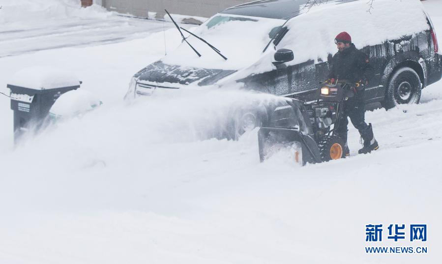 2月16日,在加拿大安大略省米西索加,一名男子清理车道上的积雪。
