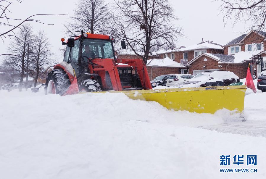 2月16日,在加拿大安大略省米西索加,铲雪车清理街道积雪。
