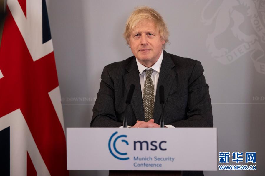 2月19日,在英国伦敦,英国首相约翰逊通过视频出席慕尼黑安全会议线上特别会议。