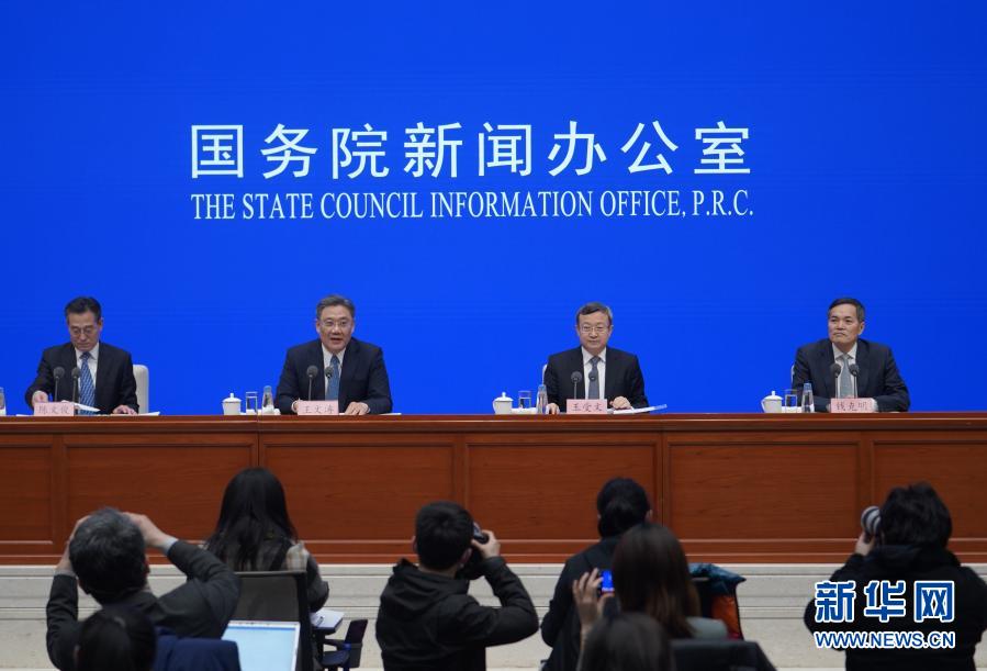 2月24日,国务院新闻办公室在北京举行新闻发布会,请商务部部长王文涛、商务部副部长兼国际贸易谈判副代表王受文、商务部副部长钱克明介绍加快商务高质量发展、服务构建新发展格局有关情况,并答记者问。新华社记者 邢广利 摄