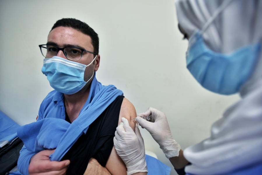 1月24日,在埃及伊斯梅利亚省阿布·哈利法急诊医院,一名医护人员接种中国新冠疫苗。新华社发(赛义德·哈桑摄)