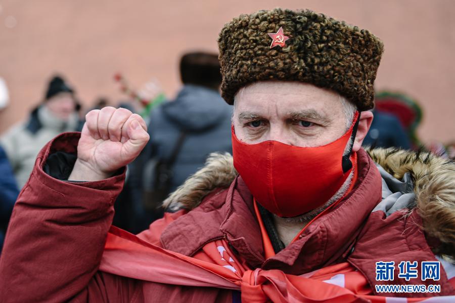 2月23日,在俄罗斯首都莫斯科,一名老人参加向无名烈士墓献花活动。