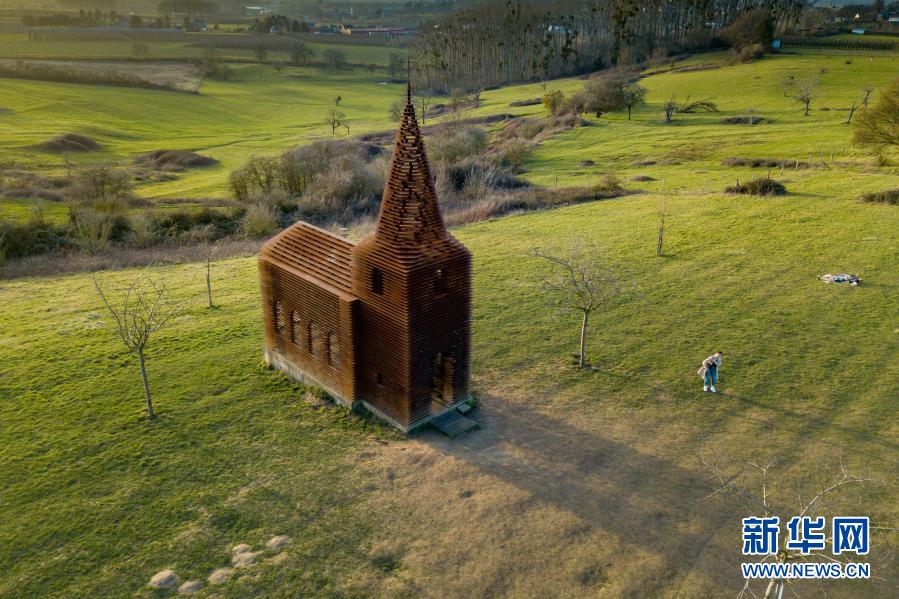 这是2月24日在比利时小镇博尔赫隆附近拍摄的“透明教堂”(无人机照片)。
