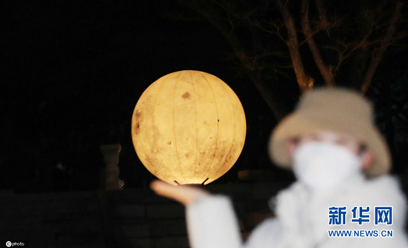 迎接元宵节 韩国昌庆宫放置巨型“月亮”