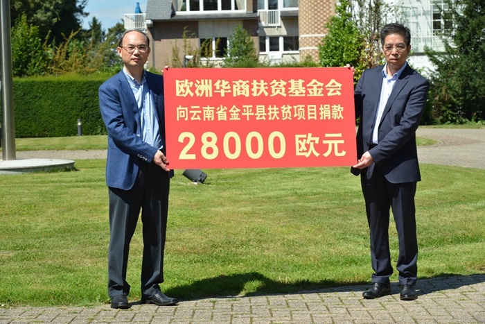 2020年7月29日,驻比利时大使曹忠明会见欧洲华商扶贫基金会会长卢益胜,并接收该会捐赠的2.8万欧元。这笔款项通过外交部扶贫办捐赠给云南省金平县金河镇五家寨村,用于实施该村村功能提升项目。