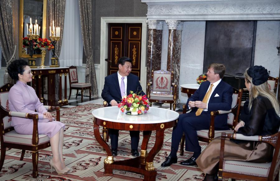 2014年3月22日,国家主席习近平在阿姆斯特丹会见荷兰国王威廉-亚历山大。当习近平夫妇抵达王宫时,威廉-亚历山大国王和马克西玛王后热情迎接。双方进行了亲切友好的交谈。