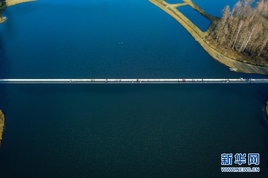 2月27日,人们在比利时小镇波克莱克附近的“水中通道”中前行(无人机照片)。