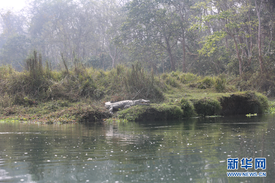 2月中旬,尼泊尔南部奇特旺的拉菩提河畔的鳄鱼。(记者唐薇 摄)