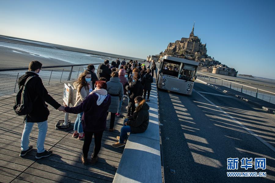圣米歇尔山位于法国诺曼底和布列塔尼之间,是一座周长900米的圆锥形小岛,由耸立的花岗岩构成,山顶上建有教堂和修道院,是法国著名的旅游胜地。1979年,圣米歇尔山被列入世界文化与自然遗产名录。受新冠肺炎疫情影响,圣米歇尔山修道院自2020年10月30日一直关闭至今。尽管如此,许多游客还是慕名而来一睹其风采。新华社发(奥雷利安·莫里萨尔摄)
