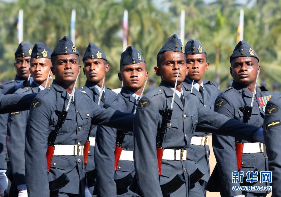 3月2日,斯里兰卡空军士兵在卡图纳耶克空军基地参加阅兵活动。
