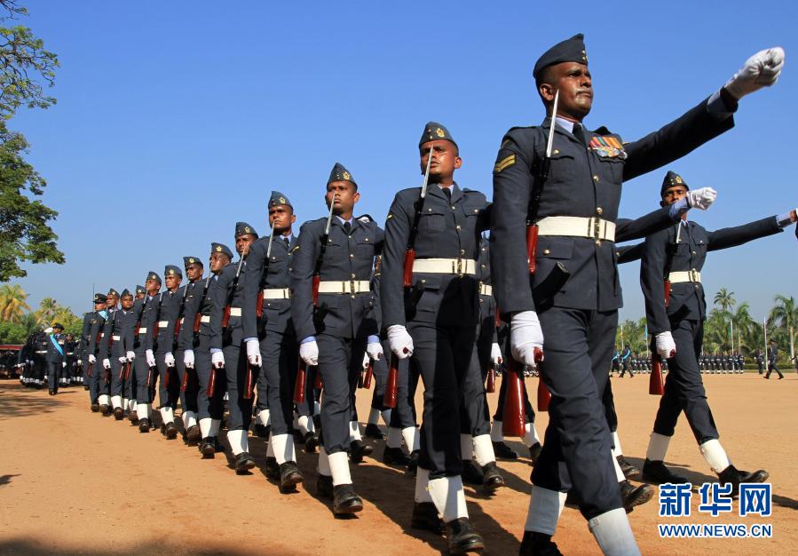3月2日,斯里兰卡空军士兵在卡图纳耶克空军基地参加阅兵活动。