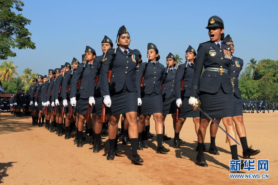 3月2日,斯里兰卡空军士兵在卡图纳耶克空军基地参加阅兵活动。