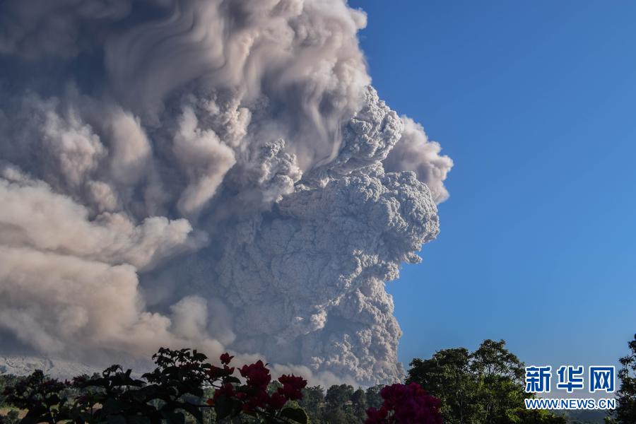 这是3月2日在印度尼西亚北苏门答腊省卡罗拍摄的喷发中的锡纳朋火山。新华社发(森比林摄)