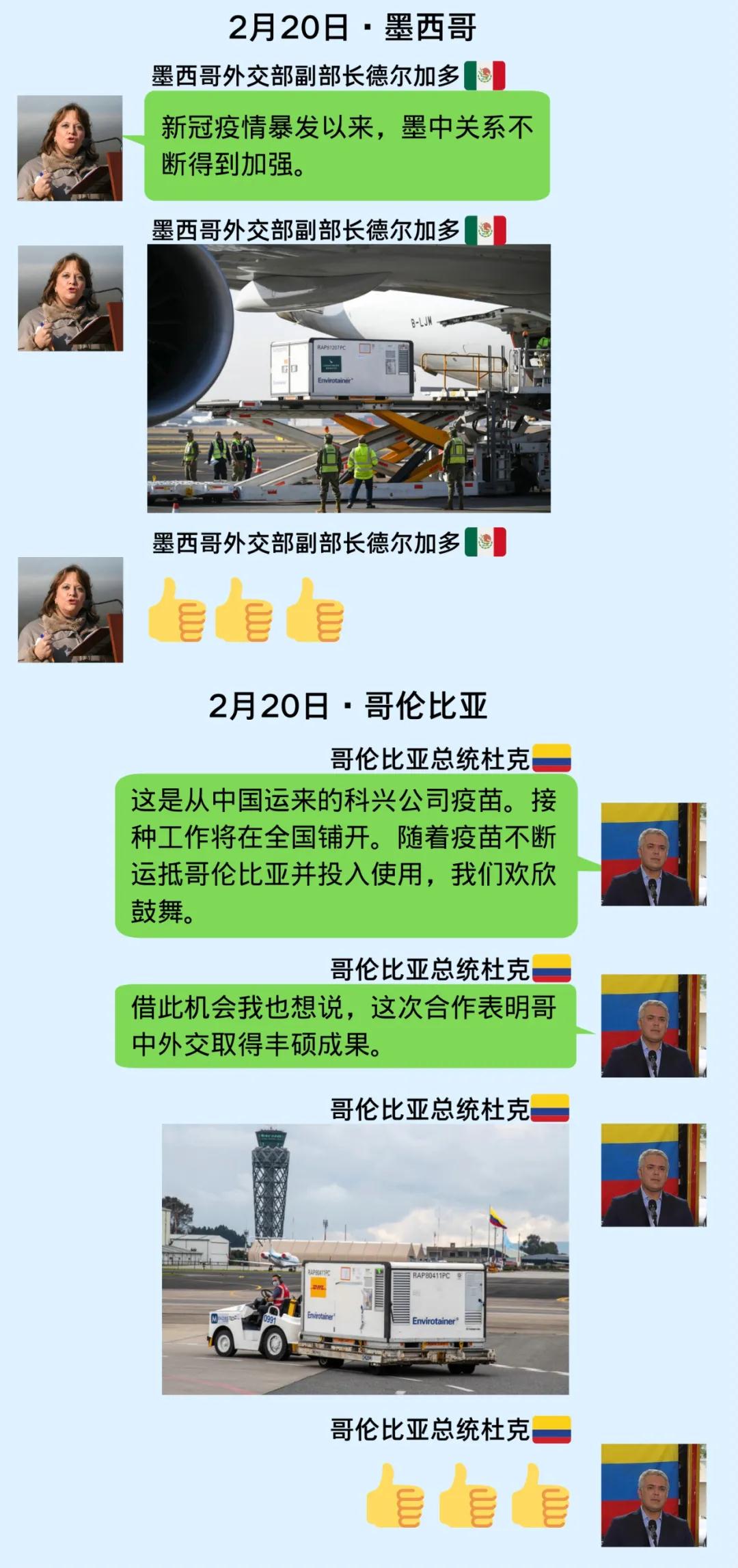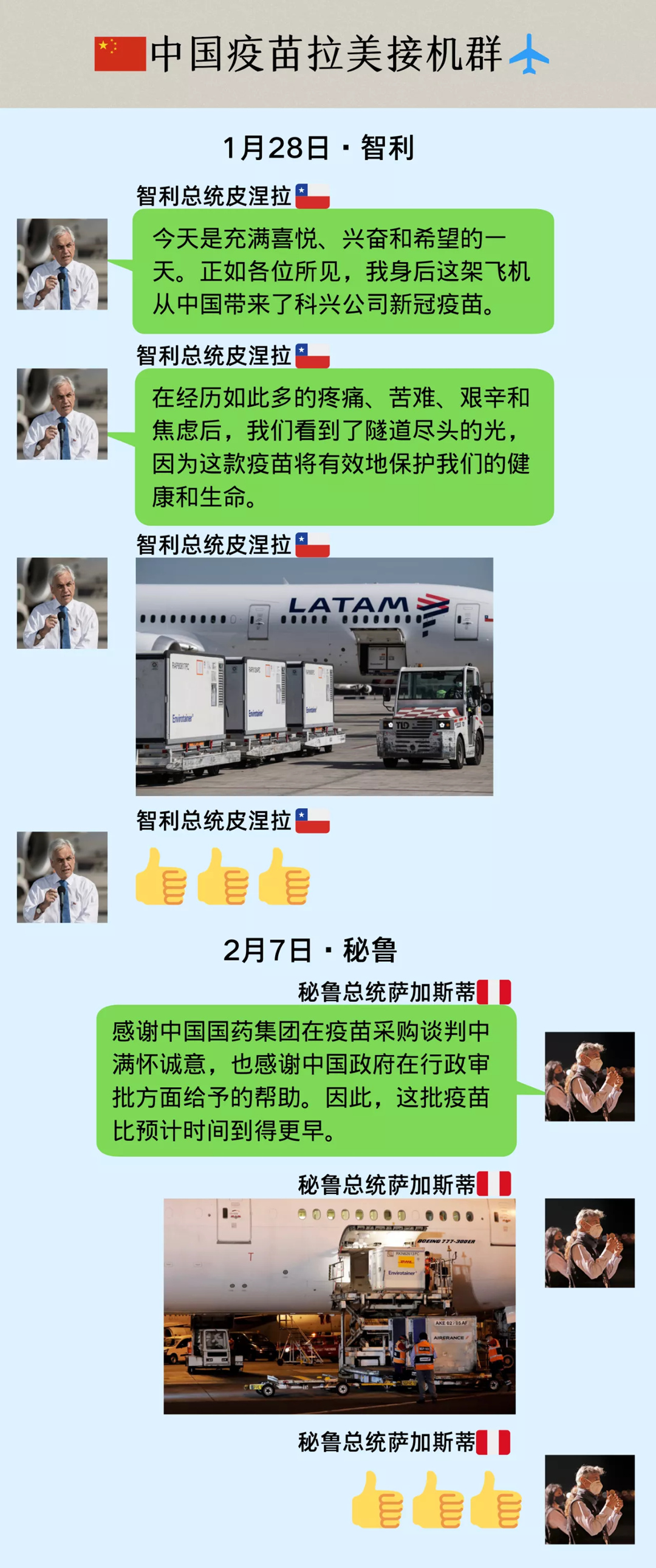 中国疫苗抵达,不少拉美国家政要亲赴机场迎接。这些大牌“接机人”都说了些啥?疫苗将如何惠及当地人民?让我们潜入“接机群”,翻看一下“聊天记录”!