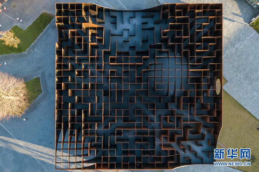 这是3月2日在比利时亨克市C-Mine艺术中心拍摄的装置作品“迷宫”(无人机照片)。
