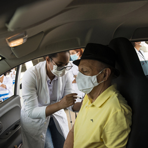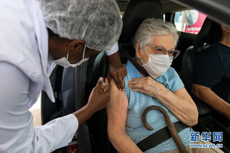 3月6日,一名医务人员在巴西里约热内卢为一名老人接种新冠疫苗。新华社发(卢西亚娜·惠特克摄)