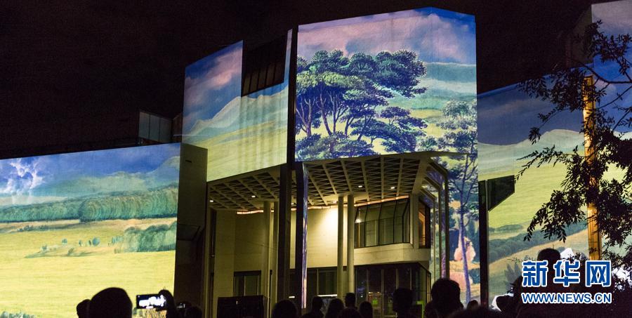 这是3月8日在澳大利亚堪培拉拍摄的国家美术馆的灯光投影。新华社发(刘畅畅摄)